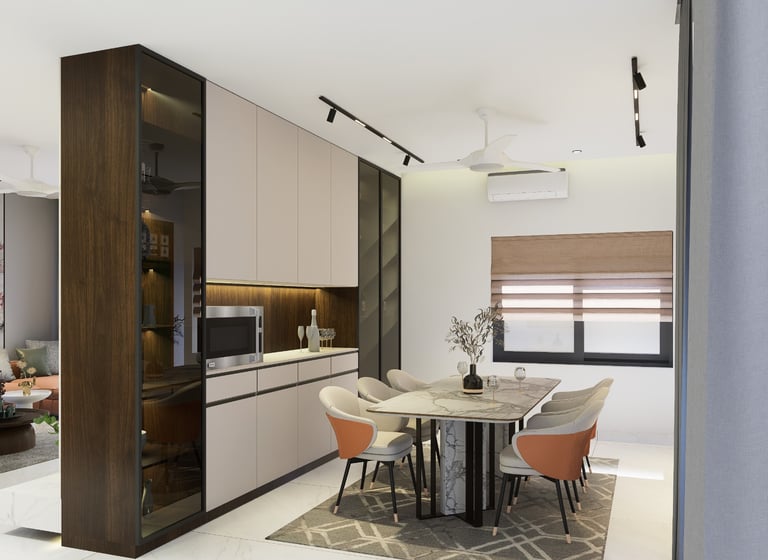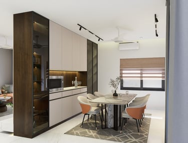 This residence is a study in modern elegance, where a serene color palette of warm neutrals and rich wood tones creates a cohesive and inviting atmosphere. Featuring luxurious marble-finish floors, bespoke cabinetry, and thoughtfully integrated lighting, each space is designed for both comfort and sophistication. From the tranquil living areas to the spa-inspired bathrooms, this home is a perfect blend of clean lines and timeless comfort.