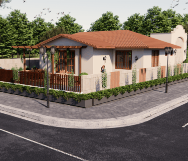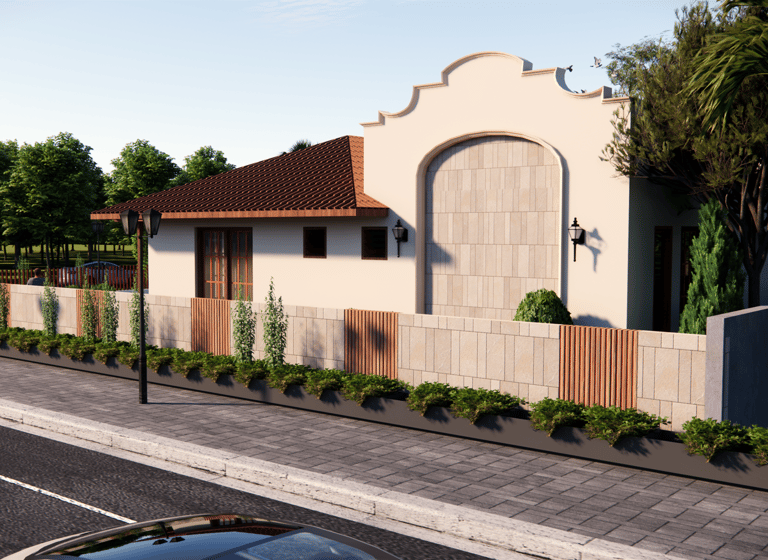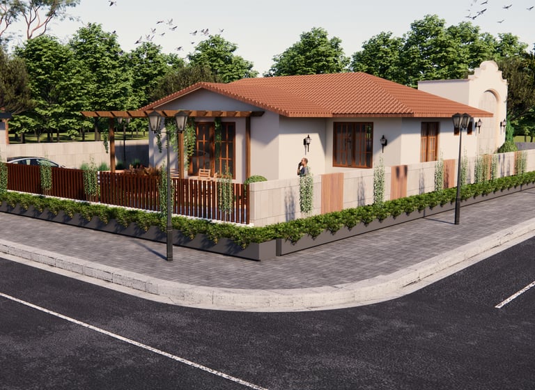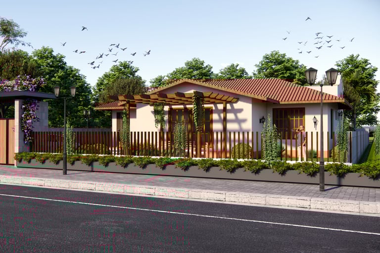 Nestled amid lush greenery ,A cozy tropical retreat blending rustic charm with modern comfort. Featuring terracotta roofs, warm wooden accents, and lush landscaping, the farmhouse offers serene outdoor seating under a pergola, a private pool, and seamless indoor-outdoor living — perfect for peaceful getaways close to nature.